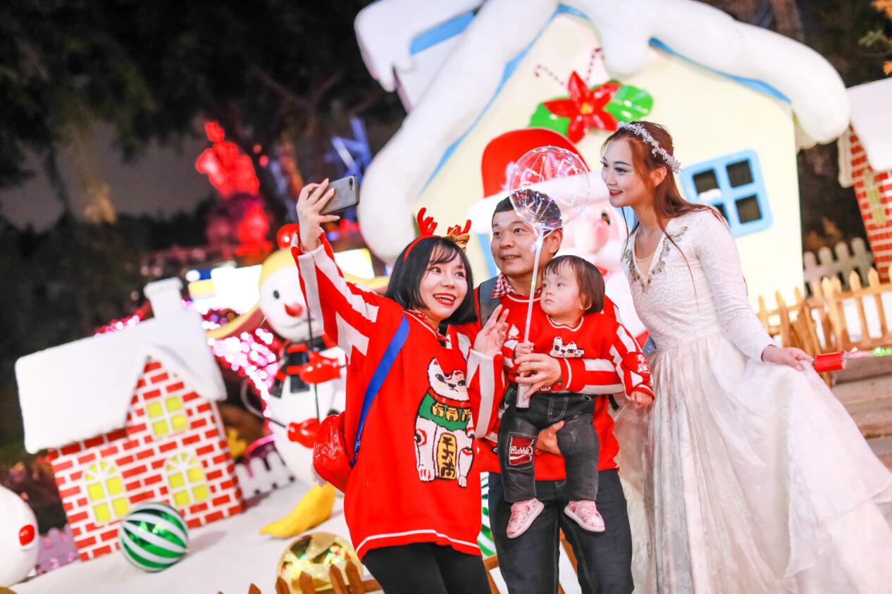 【香港商报網讯】记者 黄裕勇 报道:在缀满铃铛、彩灯的过百棵飘雪圣诞树下许下新年愿望,白色圣诞的梦幻加上金色圣诞的璀璨,足以让岁末狂欢浪漫升级。近日,百对情侣以挑战“爱的18式”开启今年长隆欢乐世界圣诞“金纷盛宴”。