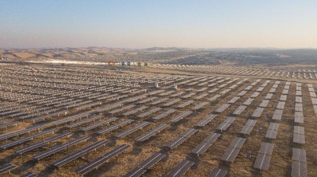 2017年11月30日,國家能源局批準建設該基地,總規劃200萬千瓦,占地面積10萬畝,總投資150億元。其中,一期50萬千瓦項目投資37.5億元,於今年3月28日完成項目企業優選工作,5月29日項目全面開工建設,將分三期完成,建成后年發電量將達40億度,實現產值超15億元,同時可有效治理沙漠20萬畝,年減排二氧化碳320萬噸、粉塵70萬噸。截至目前,一期500兆瓦項目投資37.5億元,年發電量8億度以上。,每年減少二氧化碳排放80萬噸。