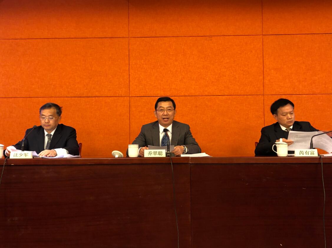 發佈會現場,南京市經信委副主任喬翠聰解讀《意見》內容