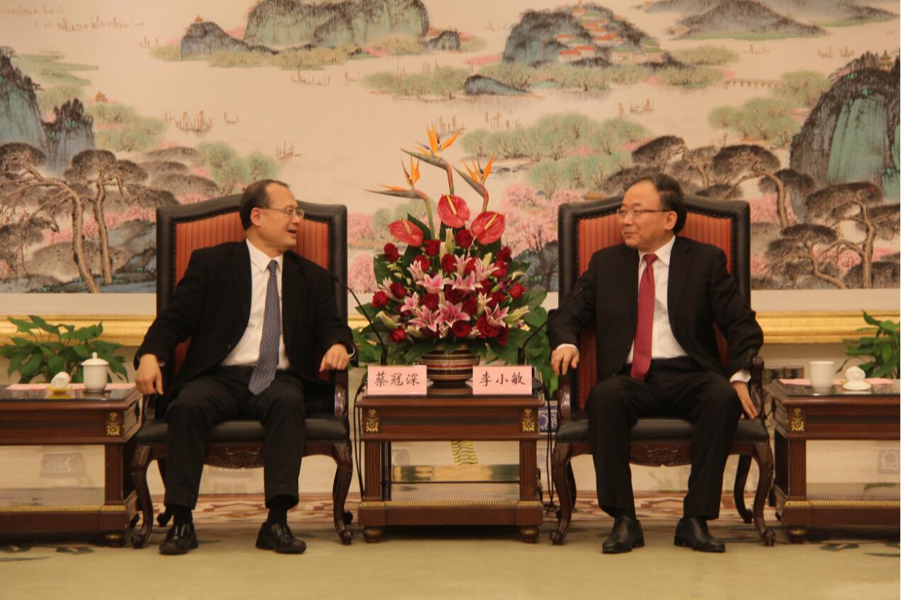 江蘇省委常委、無錫市委書記李小敏(右)會見香港中華總商會會長、香港新華集團主席蔡冠深