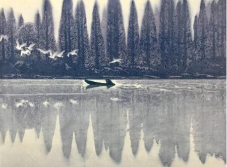 陸放的認真細緻,從棲霞主人的散記中可窺一斑:布展那日,一早出發取畫,陸老師已把所有參展作品選定,包括作品的位置都畫好了平面圖。無論藏書票還是大小版畫,都已選定了空間。這樣的認真細緻,是流淌在藝術家血液裡的。(王學東)
