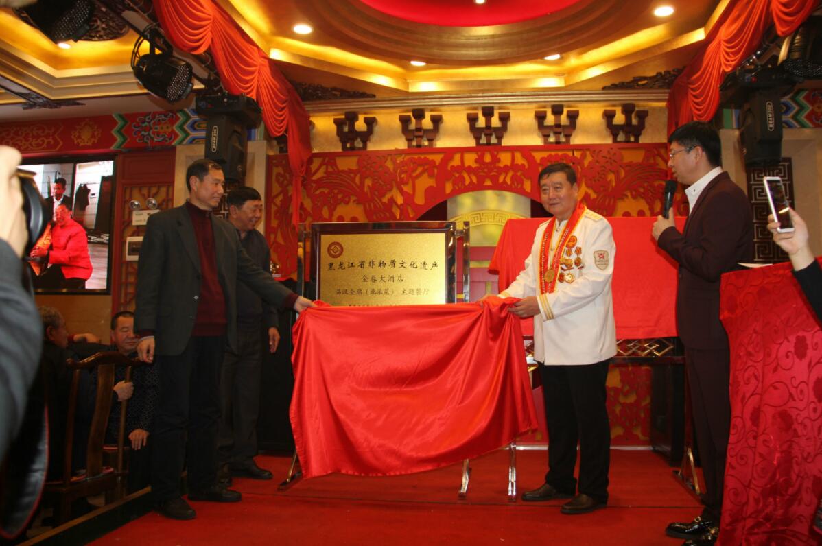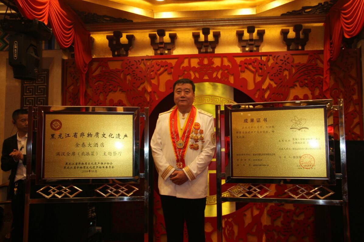 在文化和旅遊大融合的背景下,以黑龍江省級非物質文化遺產項目——滿漢全席(北派菜),獲國家課題、省級非遺標準和黑龍江省科學技術成果獎為契機,推進非物質文化遺產標準化工作與市場產業相對接。黑龍江省非物質文化遺產保護學會將金春大酒店特設為“黑龍江省非物質文化遺產——滿漢全席(北派菜)主題餐廳”。