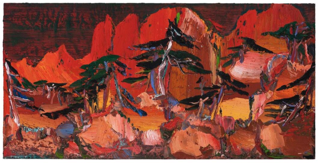 尹朝陽的布面油畫作品《山松》