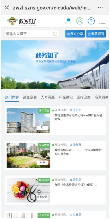 “政务知了”是南山区政务公开及政务服务咨询互助、分享共建新平台,由南山区数字政府建设管理局(区政务服务局)(以下简称数字政务局)全新打造、运营管理,其核心内容就是以开放、互助、共享为主题搭建的答疑平台,是对“官方发布”的办事指南和信息进行鲜活补充,网友共享政务办事经验,形成有故事感、有代入感“攻略”,有助于给办事群众提供更加快捷、优质、高效的政务服务。目前,该平台上,越来越多的网友前来互动分享他们办理各种政务事项的经验,生动活泼,办事过程非常细致,“有图有真相”,其他用户只要“按图索骥”即可成功办理。实时显示的积分榜,也显示出该平台的“人气”。