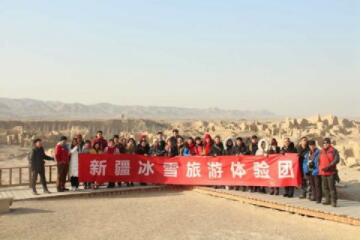新疆冬季冰雪旅遊體驗團在吐魯番交河古城合影(黃萍攝)
