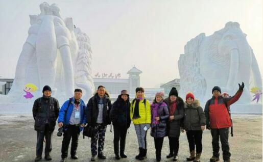 新疆冬季冰雪旅遊體驗團在天山天池合影(黃萍攝)