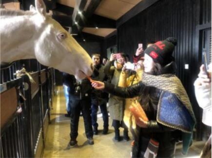 新疆冬季冰雪旅遊體驗團在新疆野馬集團汗血寶馬基地踩線(黃萍攝)