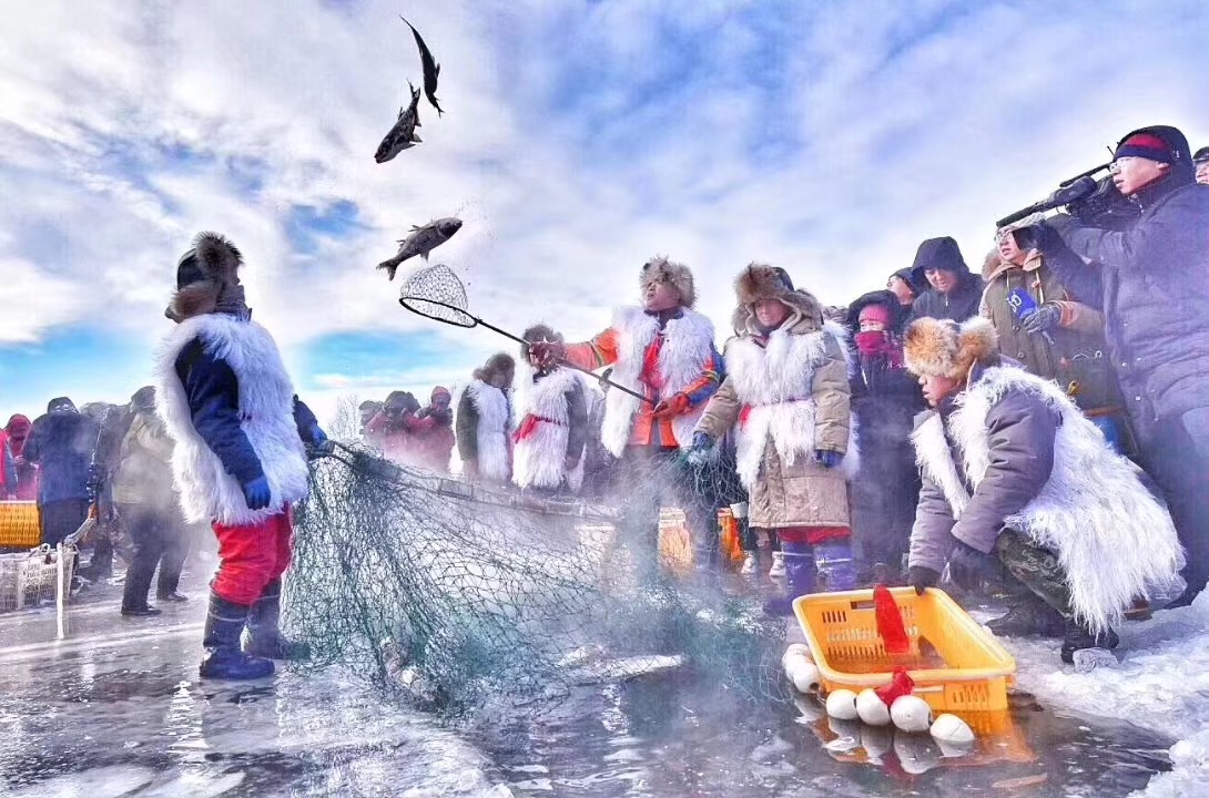 五大連池是黑龍江省較大湖泊,水域寬闊,池水礦泉含量高,磁化能力強,含氧豐富,水源補給全部都來自地下的偏硅酸鐵硅質礦泉水,水中自然生長的9科36種魚的體內富含了多種礦物質微量元素。從五大連池火山堰塞湖捕獲的魚堪稱是中國淡水魚中舉世罕見的珍品。千里冰封的五大連池冬季壯麗景觀,當地的漁民趕在中國春節前開展的大規模捕魚作業,已經形成了千年文化傳承、地域特色鮮明的漁獵“豐收盛景”。(金麗 張曉磊)