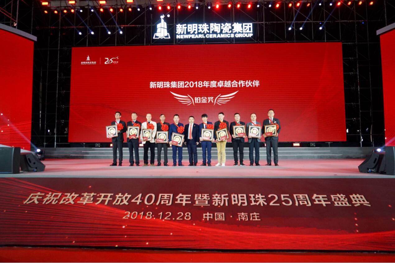 会上,新明珠特别对25年来一路相伴的“风云人物”进行了表彰,对工龄达到20年的92名员工颁发了同舟共济奖,对建立合作关系达20年的43名经销商颁发了同心共赢奖,对与新明珠建立合作关系满20年以上的24名供应商、设备商、工程商颁发了携手共进奖。
