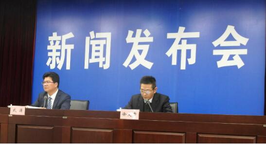 安徽省經濟和信息化廳黨組成員徐文章(右)介紹《安徽省人民政府關於進一步擴大和陞級信息消費持續釋放內需潛力的意見》文件貫徹落實情況。
