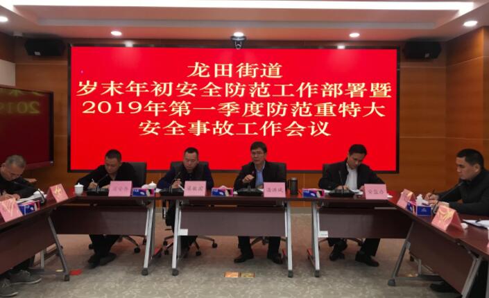 【香港商報網訊】記者 焦家志 通訊員 徐敏敏 報導: 1月4日,坪山區龍田街道為加強歲末年初安全防范工作,堅決遏制重特大事故的發生,由街道黨工委副書記、辦事處主任潘洪斌主持召開歲末年初安全防范工作部署暨2019年第一季度防范重特大安全事故工作會議。街道黨工委委員、武裝部部長梁敏國,街道各部門主要負責人,各社區書記、安全主任,市場監管龍田所、公安派出所、交警中隊分管安全工作負責人等參加會議。