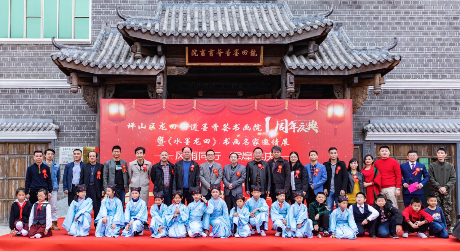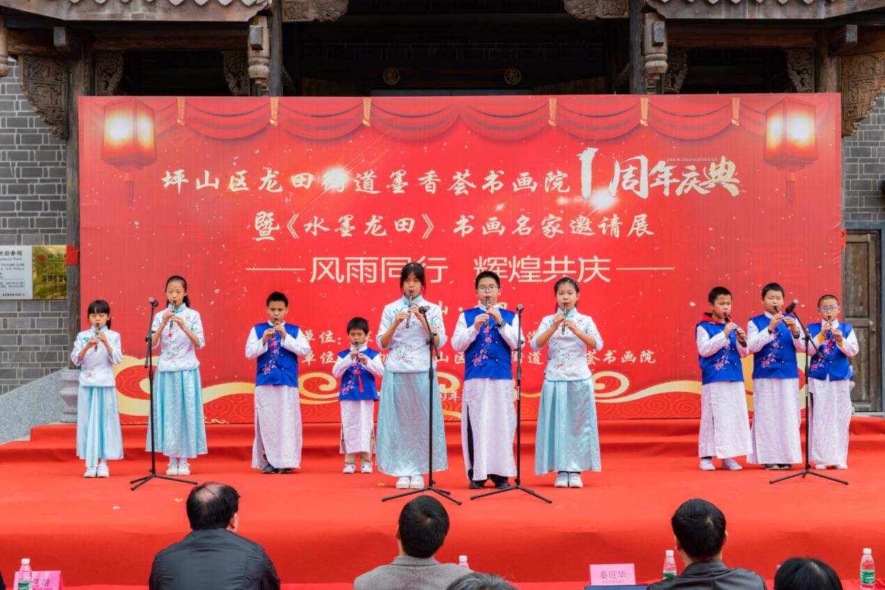 【香港商报網讯】记者 焦家志 通讯员 吴德锴 报道: 1月5日上午,坪山区龙田街道为庆祝墨香荟书画院成立一周年,深入贯彻落实十九大精神,宣扬文化艺术正能量,促进中国传统文化的发展,将中国水墨书画艺术传颂民间,让社区文化更加丰富多彩,在墨香荟书画院举办成立一周年庆典暨《水墨龙田》全国当代书画名家邀请展开幕式。