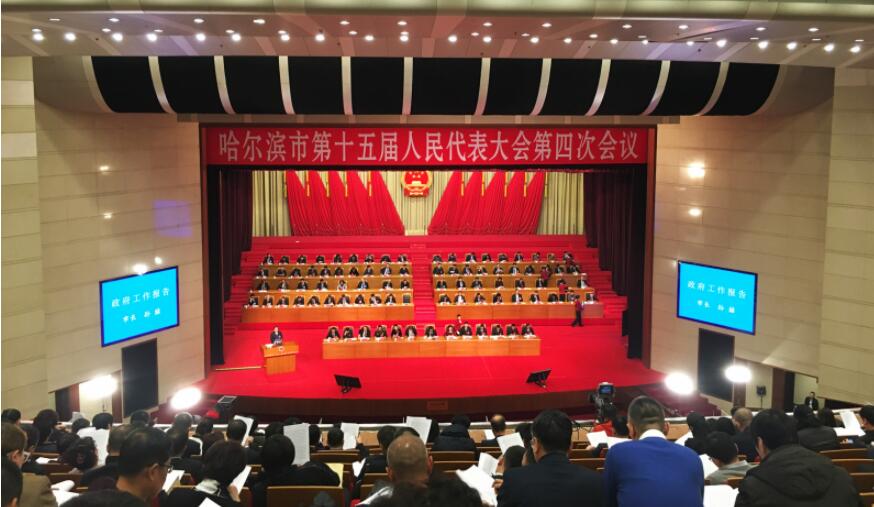 黑龍江省哈爾濱市委副書記、市長孫喆在會上作政府工作報告。
