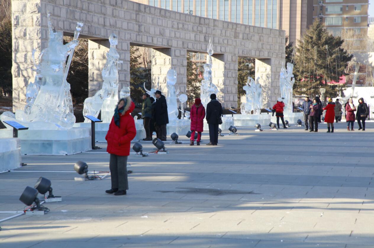 遊客在長春世界雕塑公園冰雪天地遊覽