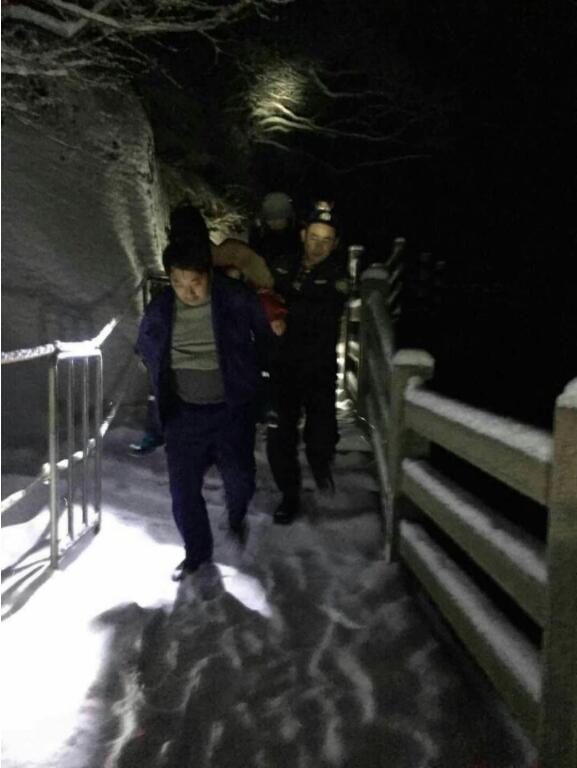 深夜的山風和飛雪,打在臉上如同刀割一樣,沒穿大衣快速奔跑的救援人員,卻是大汗淋漓。