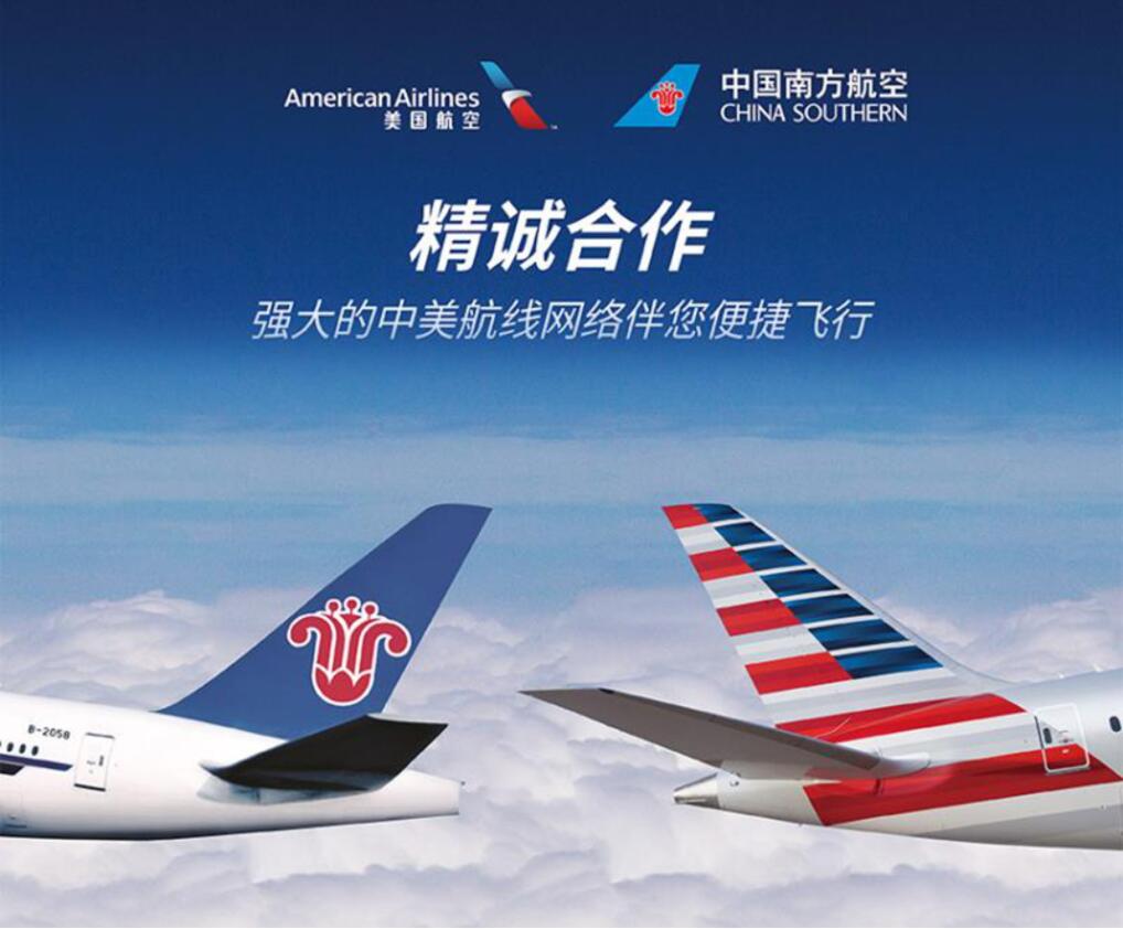 【香港商报網讯】记者 林丽青 报道:从1月17日起,中国南方航空公司与美国航空公司正式开始在各自国家内陆航线网络扩大代码共享合作,由美航承运、经洛杉矶、旧金山、纽约中转可抵达美国21个城市,由南航承运、从北京和上海浦东中转可前往中国20个城市。双方还将于2019年2月15日在南航承运的广州-洛杉矶、广州-旧金山、武汉-旧金山、广州-纽约、沈阳-洛杉矶,以及美航承运的达拉斯-北京、达拉斯-浦东、洛杉矶-北京、洛杉矶-浦东等9条中美主干航线实现代码共享。