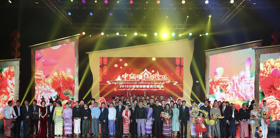 【香港商報網訊】記者 劉曉寒 報導:1月19日晚,由中國國務院新聞辦公室、中國駐緬甸大使館、雲南省人民政府、緬甸宣傳部、緬甸宗教事務與文化部共同主辦的「中緬情 合家歡」2019中國緬甸新春聯歡晚會在緬甸仰光舉行。中緬各界人士1000餘人出席並觀看了此次晚會。
