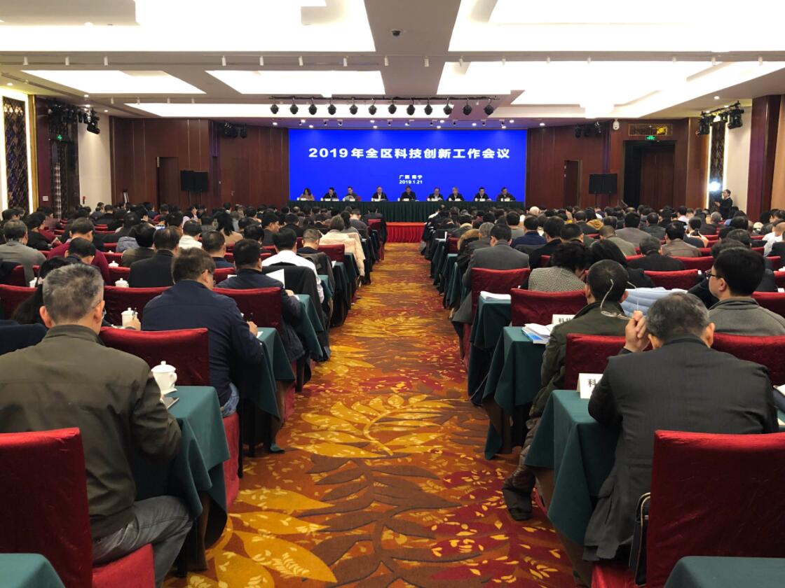 廣西壯族自治區科技廳黨組書記、廳長曹坤華在會上稱,廣西聚焦傳統優勢產業、戰略新興產業、特色農業等領域關鍵共性技術難題,以科技支撐產業轉型陞級,全年累計安排自治區本級財政科技計劃項目1794項。其中,柳工集團全球首創的VL80A垂直舉升裝載機獲得國際發明專利7項、國內發明專利35項;玉柴集團研發的新型船電用柴油機填補國內200缸徑高速大功率發動機的空白;廣西大學研製的立體構造石墨烯複合橡膠改性瀝青路面技術成功在南寧大橋維修中得到工程化應用;“超500米跨徑鋼管混凝土拱橋關鍵技術”項目榮獲2018年度國家科技進步獎二等獎。
