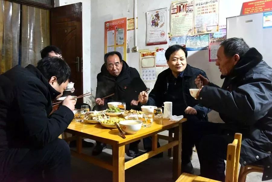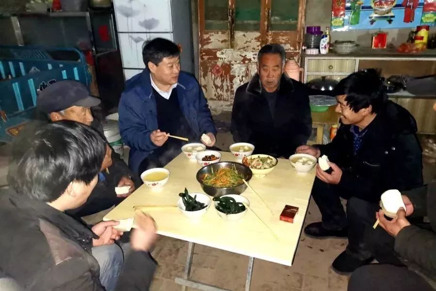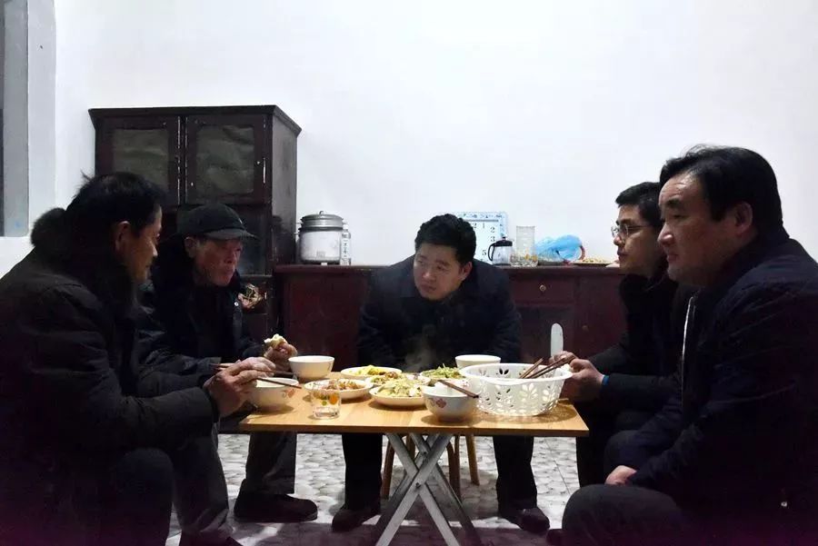 傍晚,張宏義到徐鎮鎮東習村貧困戶任緒章家中,並與他同吃農家飯,一起拉家常,詳細詢問了解他的生產、生活情況和需求,「零距離」察民情、聽民聲、解民憂。一碗小米飯、一碟腌鹹菜、一碟豆醬餅、一盤炒豆腐、一盤炒白菜,邊吃邊聊,簡單實在,暖意融融。飯後,張宏義繼續住村開展工作,與鄉村幹部一起理思路、查問題,共謀脫貧大計。