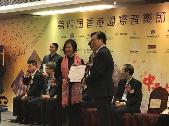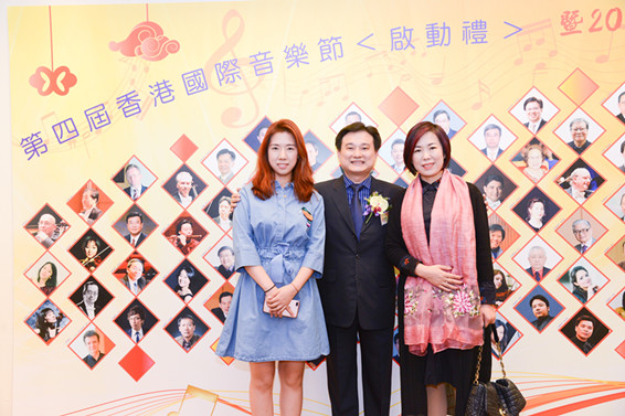 王秀華和女兒王晨曦(左一)與香港國際音樂節籌委會主席許俊輝先生合影