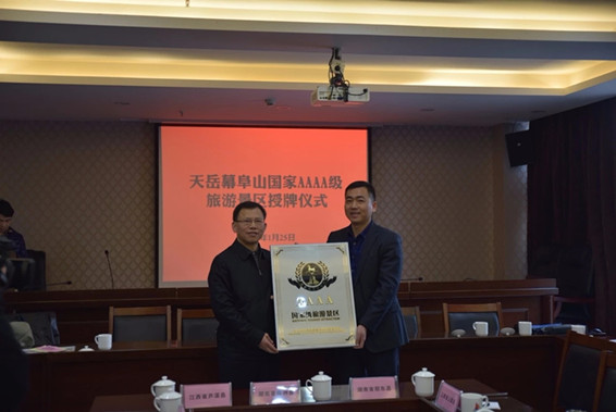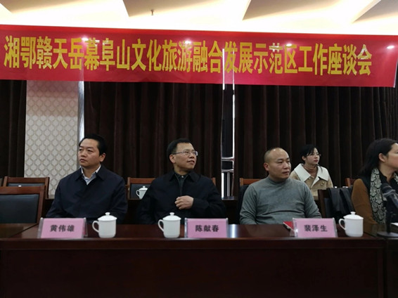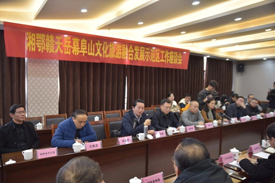 【香港商報網訊】1月25日,湘鄂贛天岳幕阜山文化旅遊融合發展示範區工作座談會在湖南岳陽平江縣舉行,湖南省文化和旅遊廳廳長陳獻春出席並為天岳幕阜山4A級景區授牌。湘鄂贛天岳幕阜山區域39個縣(市、區)文旅部門和文旅企業、媒體代表與會並參加首屆旅遊春晚活動。