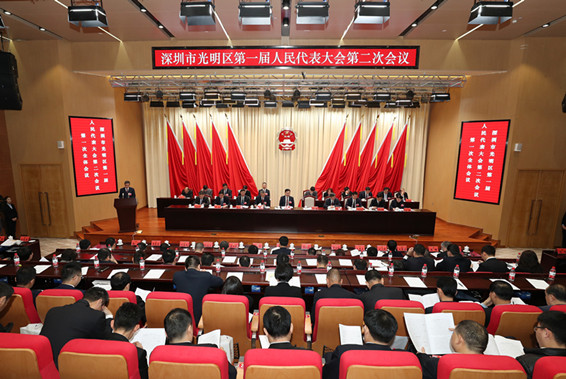 深圳光明区第一届人民代表大会第二次会议上,光明区委副书记、区长刘胜作政府工作报告