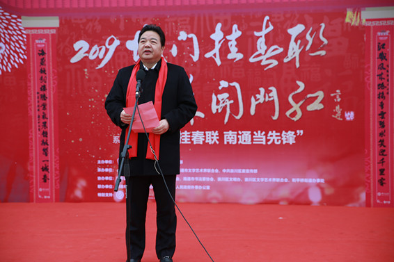南通市委常委、宣傳部部長陸衛東表示,「城門掛春聯,南通當先鋒」揭聯儀式,用中華民族的傳統方式,為整座城市送上春之祝福。祝福,寄託著希望,更蘊含著自我實現的信念和動力。今天的南通,迫切需要這樣的動力支援。站在「一帶一路」、長江經濟帶、長三角一體化發展等重大戰略機遇疊加的強勁「風口」上,南通正按照江蘇省委賦予的新使命新定位,努力成為江蘇沿海崛起的龍頭,爭當全省解放思想跨越趕超的先鋒、高質量發展的先鋒、新時代幹事創業的先鋒。