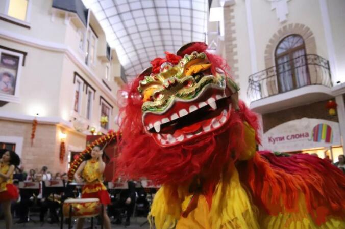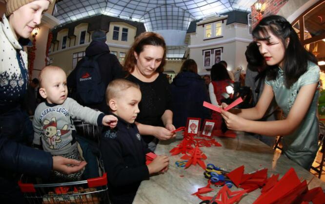 1月27日至28日,俄羅斯阿穆爾州布拉戈維申斯克市城市文化中心、群島商場、孔子學院、東方語言學院等地到處張燈結綵、舞龍舞獅,洋溢著濃郁的中國年味兒。原汁原味的山西晉城上黨梆子,美輪美奐的青花瓷旗袍表演,金髮碧眼的舞龍少年,中俄藝術家連袂演出的精彩節目引發現場陣陣歡呼。