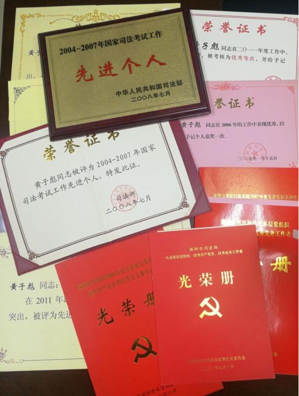 2018年8月,司法部授予黄子彪同志“全国司法考试先进个人”荣誉称号。2018年12月,司法部再次表彰黄子彪为“首次法考工作表现突出个人”。