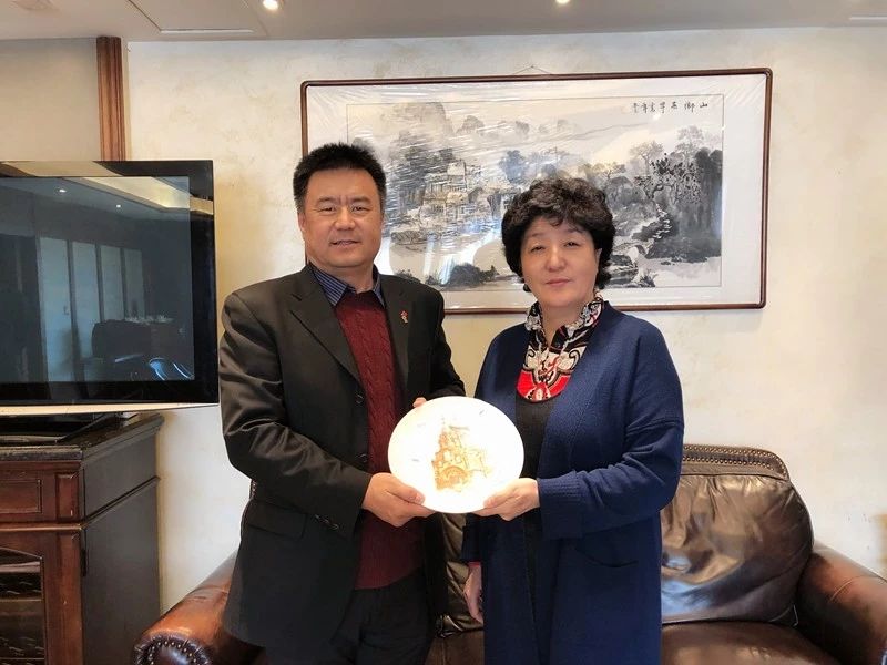 哈爾濱市委常委、統戰部部長曲磊(女)在與南部非洲中國企業家協會會長李國東會面