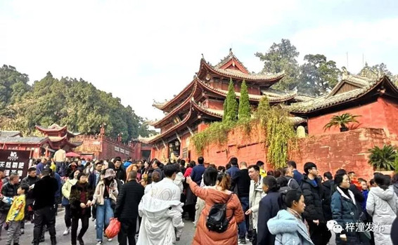 「北有孔子,南有文昌」。梓潼七曲山大廟因文昌祖庭而遠近聞名。每年春節假期,全國各地遊客都會慕名而來,祈福朝拜,旅遊觀光。今年春節期間,七曲山景區內人山人海、遊人如織,處處洋溢着喜慶與祥和的氣氛。