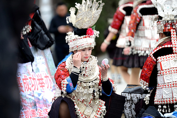 【香港商報網訊】記者 黃慶松 報導: 為了豐富元宵節歌舞活動,弘揚苗族傳統文化,展示苗族遊方風情。2月14日,貴州台江縣在縣城河畔秀眉廣場舉行苗歌大賽,來自該縣施洞、革東、排羊等九個支系的近百名專業苗歌手和山歌愛好者們,歡聚一堂,她們用婉轉動聽的苗歌,歌頌祖國、家鄉的變化。