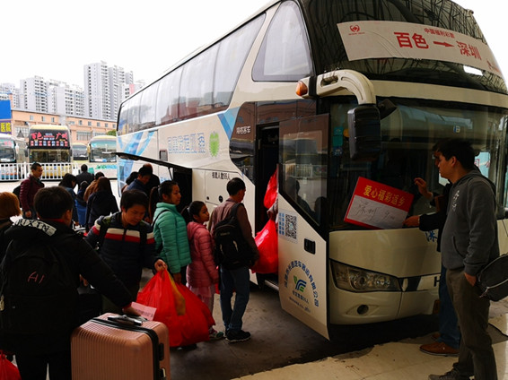 百色务工人员节后乘坐爱心大巴赴深工作