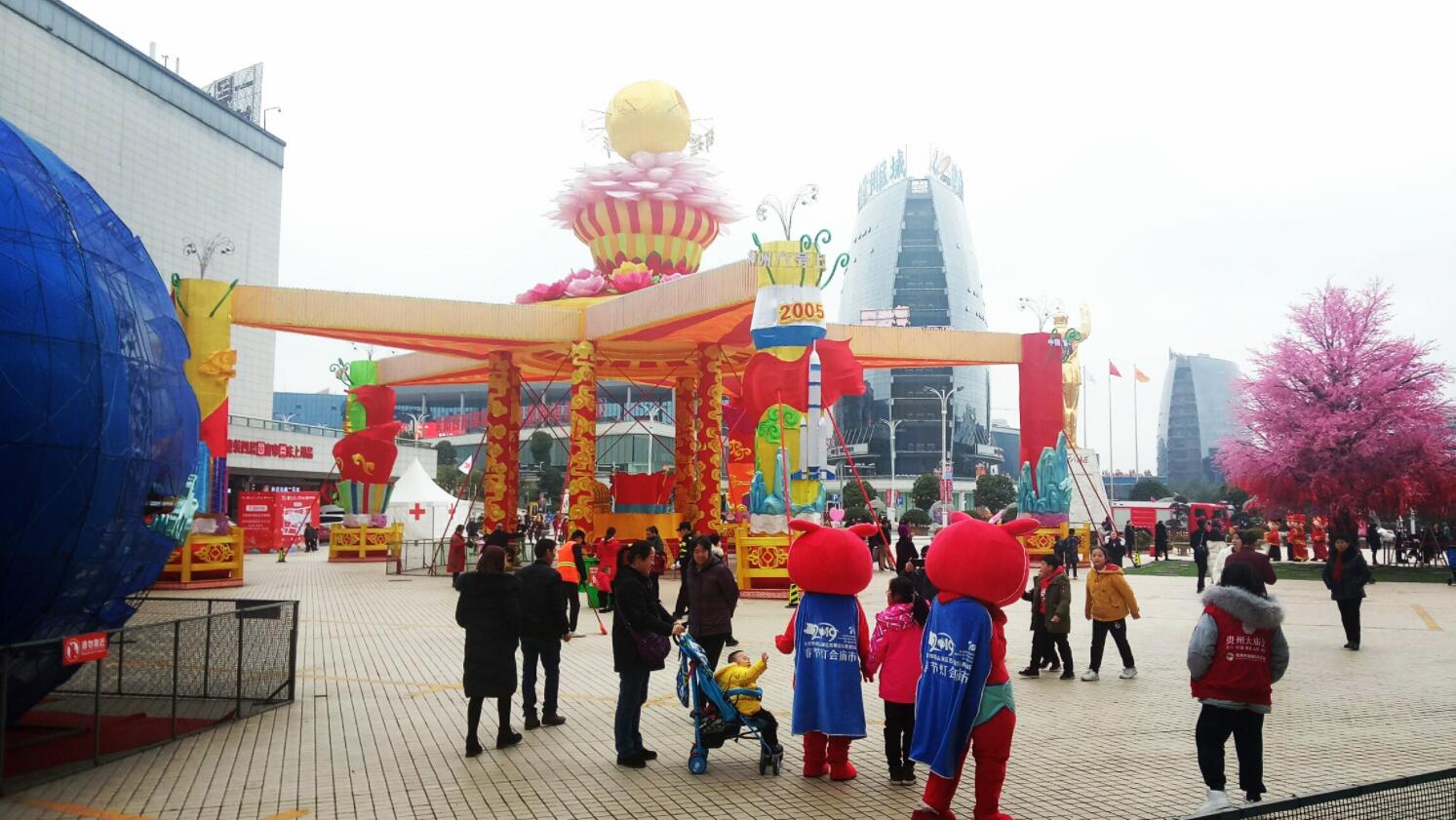 據瞭解,2019年的貴陽市觀山湖春節燈會廟市以新中國成立70周年、改革開放40周年為背景,分為“時代中國、多彩貴州、大美山湖、招財納福、春天故事、夢游未來”六大主題燈區,在燈組風格上,既延續了往屆傳統燈組,又引入插畫風、現代風的設計方式,使傳統與現代交織複合。