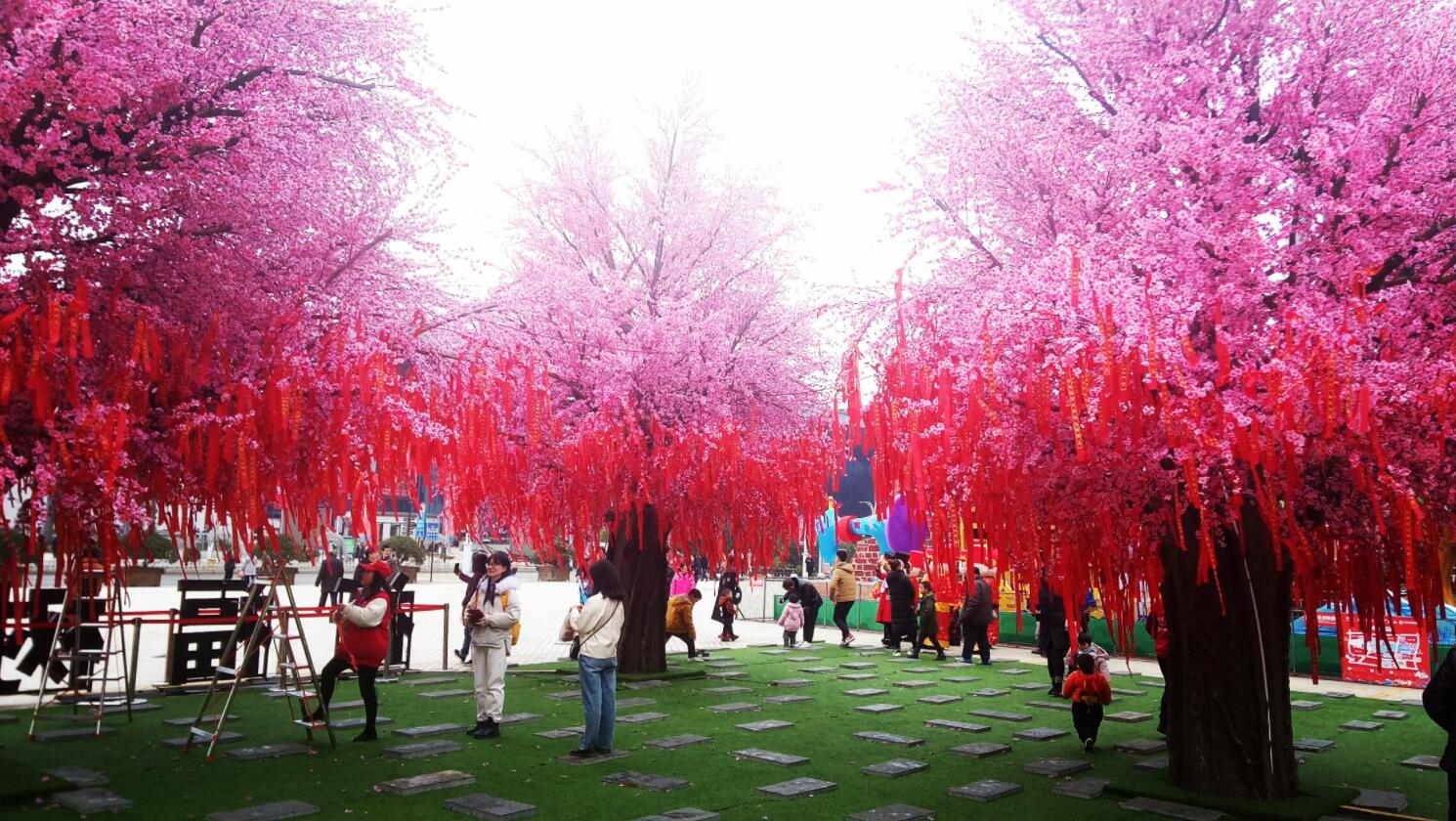 逛廟市猜燈迷是保留項目,今年的猜燈迷有所不同,互動體驗感讓遊客紛紛拿出手機掃紅燈籠旁的這個小福牌(許願牌),原來上面有一個二維碼,掃碼後進入一個公眾號,在30秒的時間內答完一定數量的題目,就可以到工作人員處領取一份小禮物了。