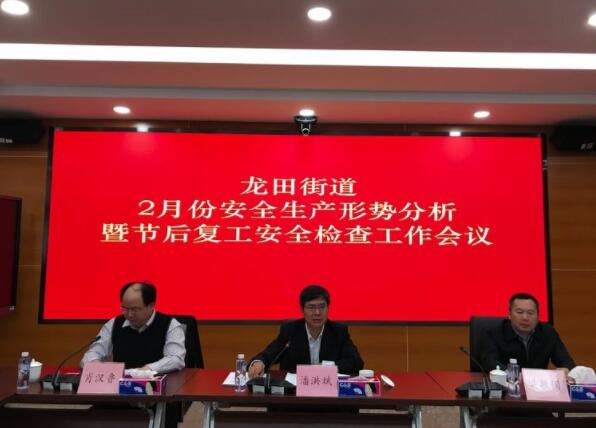 【香港商报網讯】2月18日上午,坪山区龙田街道党工委副书记、办事处主任潘洪斌主持召开2月份安全生产形势分析暨节后复工安全检查工作会议,旨在贯彻落实上级关于节后复工复产安全工作要求,继续做好辖区安全生产工作。街道党工委委员、武装部部长梁敏国,街道党工委委员、宣统办主任肖汉鲁及街道各部门主要负责人,各社区书记、安全主任、网格站站长,市场监管龙田所、公安派出所、交警中队分管安全工作负责人等参加会议。