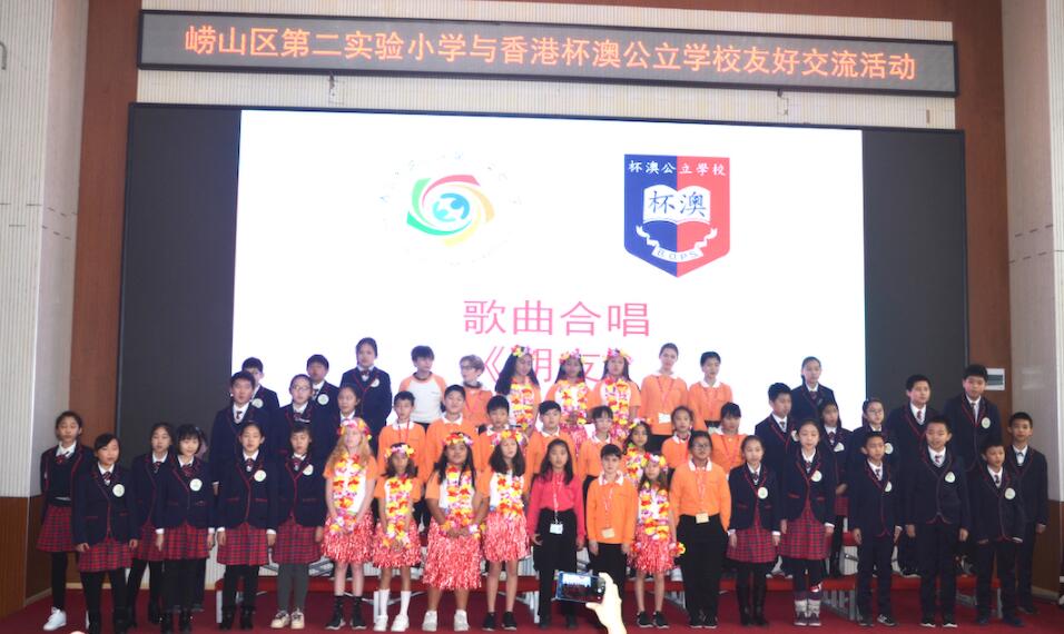 儀式上,香港政府駐山東聯絡處副主任李嘉欣、香港青島同鄉聯誼會會長董瑞婷致辭,雙方學生分別表演啦啦操、非洲舞、歌曲,最後合唱《朋友》。簽約儀式結束後,由嶗山區第二實驗小學的學生們一對一牽手香港懷澳公立學校同學參觀學校,體驗版畫與剪紙、國畫、膠州大秧歌、樂動笛聲、國粹京韻、中國功夫等中國傳統文化並共進午餐。
