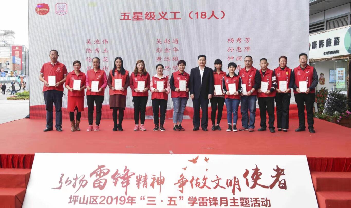 【香港商報網訊】記者 焦家志 報導: 3月5日下午,為紀念第57 個學雷鋒日,由坪山區群團工作部、區文明辦主辦,團區委承辦的「弘揚雷鋒精神,爭做文明使者」坪山區2019年「三·五」學雷鋒月主題活動在益田假日世界廣場正式啟動。坪山區委常委、組織部部長賴武出席並致辭,團市委辦公室調研員李霄霞、區有關部門領導和各街道相關負責人以及優秀義工代表共約180人參加了啟動儀式。