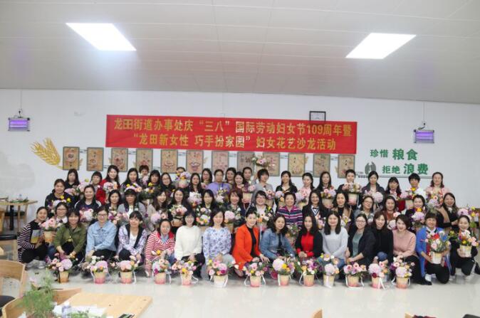 【香港商報網訊】3月6日下午,坪山區龍田街道舉辦慶祝「三八」國際勞動婦女節109周年暨 「龍田新女性 巧手扮家園」婦女花藝沙龍活動,來自街道各社區、各機關單位婦女代表歡聚一堂,學習花藝,共敘友誼。