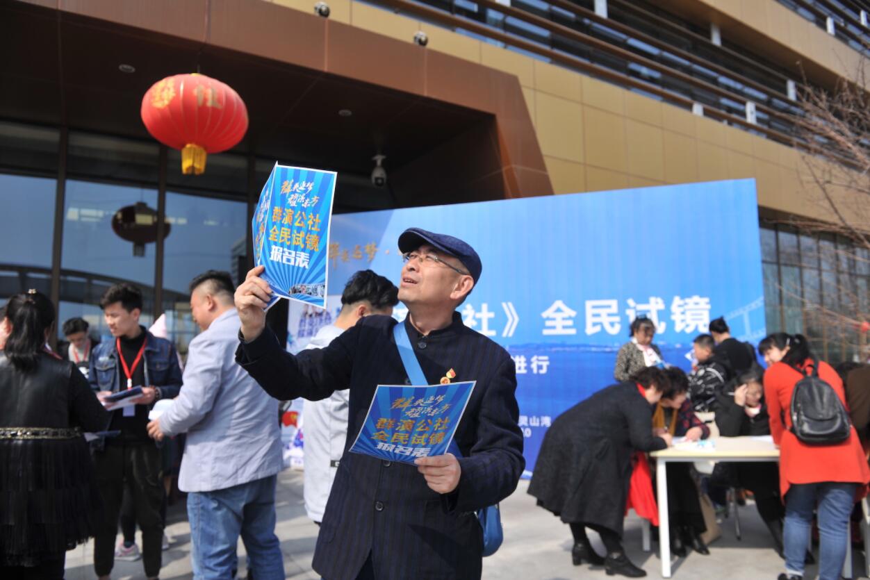 宣講環節由山東衛視主持人王曉龍主持,山東衛視節目運營部主任、《群演公社》項目製片人趙瑞介紹了項目的整體安排。趙瑞表示,“全民試鏡”的目的就是為了發掘優秀的群演,同時她還提到“最後將有8位群演入駐群演公寓,共同角逐演技之王”。此外,知名演員林永健、高亞麟、韓東君、萬國鵬還為現場的選手們送來了一段VCR,寄語參賽選手:“堅守夢想,倔強成長,釋放光芒,縱情閃亮,讓夢想照進現實”,為選手們加油打氣。