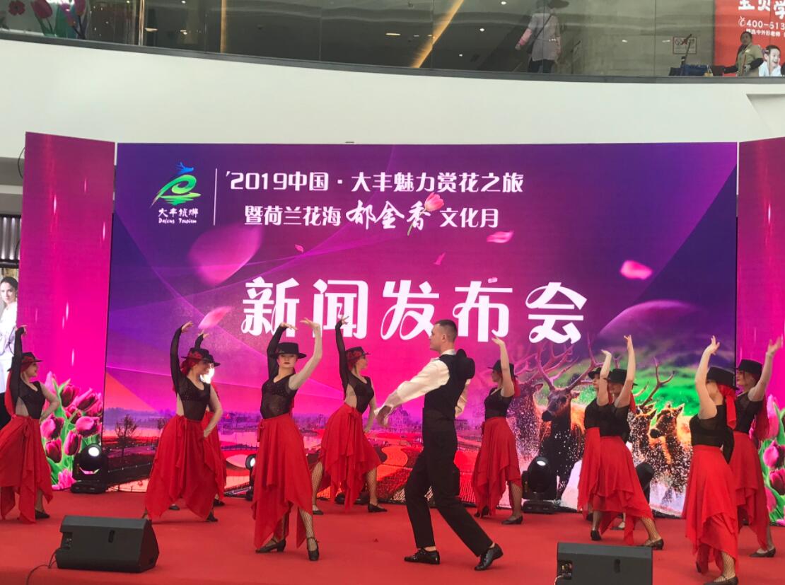 會上,荷蘭花海和梅花灣景區分別帶來了荷蘭風情舞和《范公夢梅》舞台劇表演,隨後,由大豐4A級以上景區和省五星級鄉村旅遊區代表共同啟動了2019中國·大豐魅力賞花之旅暨荷蘭花海鬱金香文化月。