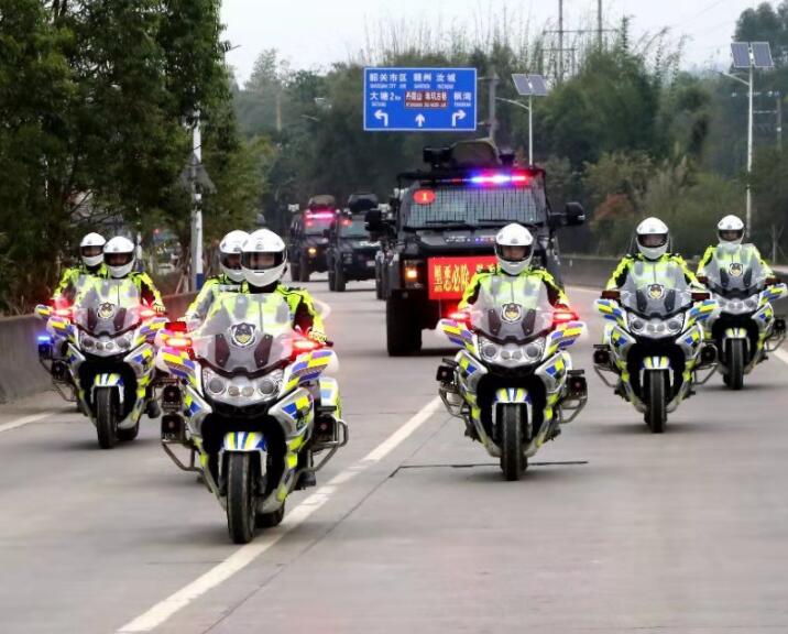 爆炸聲剛落,警鳴聲又起,由裝甲車、運警車、衝鋒車、排爆車、水泡車、裝備車組成的武裝巡遊方隊早已整裝待發。韶關副市長、市公安局局長劉清生一聲令下,武裝巡遊隊伍依次從會場出發,沿106國道至行至韶贛高速大塘收費站折返。一路上,巡遊警燈閃耀、警笛長鳴,盡顯人民警察威武之師的光輝形象。