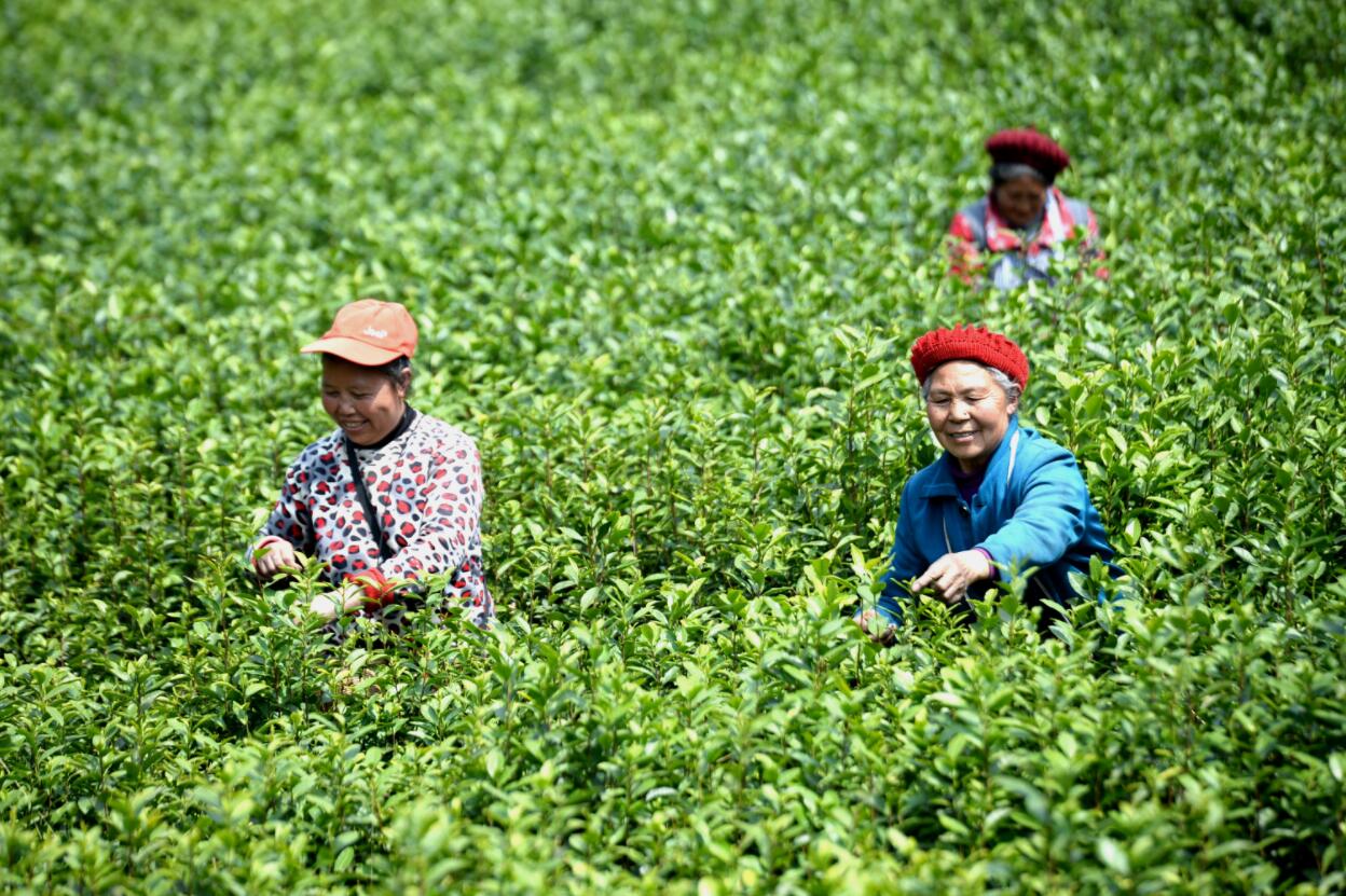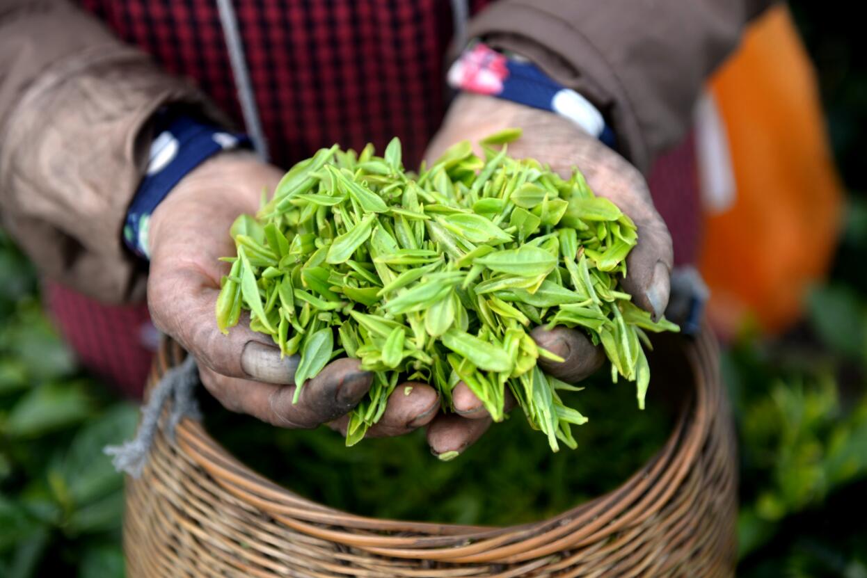 【香港商報網訊】3月20日,隨着氣溫逐步回暖,位於銅仁市沿河縣塘壩鎮榨子村的4000餘畝茶園陸續進入春茶採摘期,茶農們穿梭在茶園中,搶抓農時採摘春茶。(黃慶松 任廷海 楊藝非)