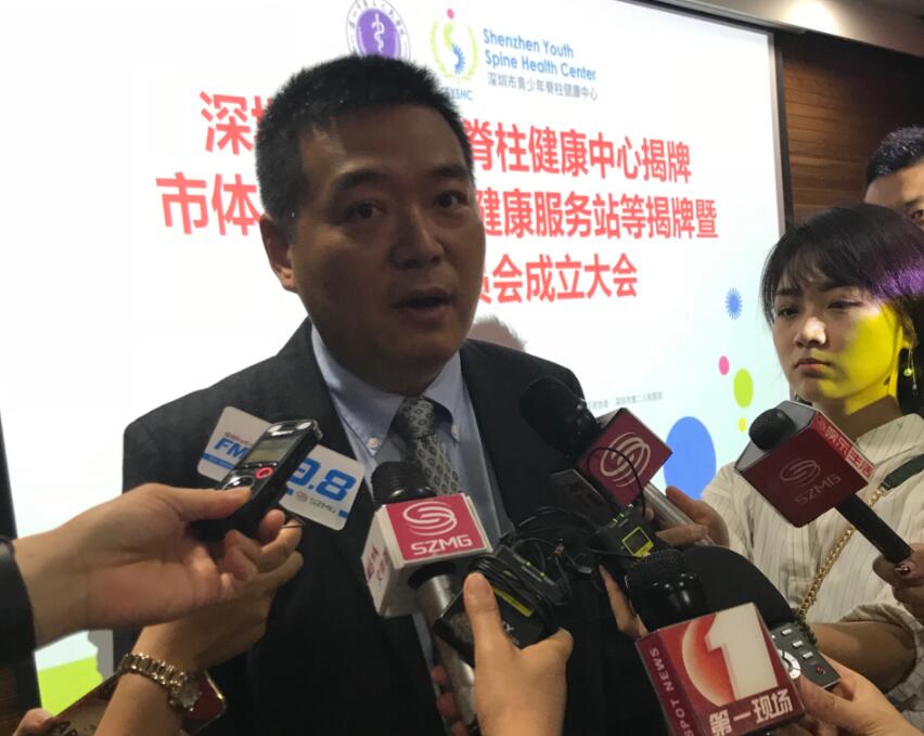 深圳市青少年脊柱健康中心主任顏濱接受媒體採訪