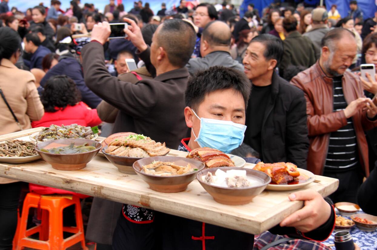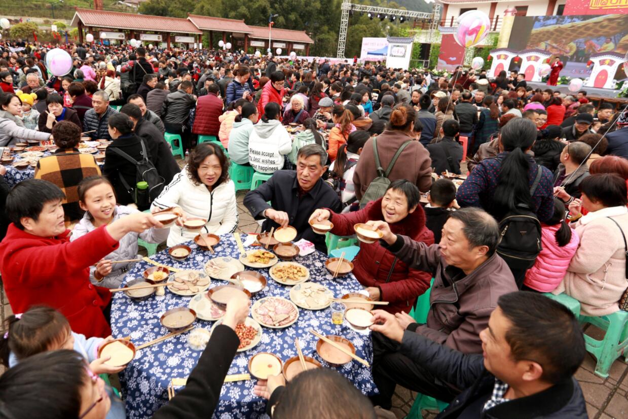【香港商報網訊】請春酒,是川南傳承已久的習俗。3月23日,四川省宜賓市高縣慶嶺鄉橋坎村擺出百桌春酒宴,匯演「鬧春」民俗節目,讓數千遊客體驗了一把川南請春酒民俗文化。