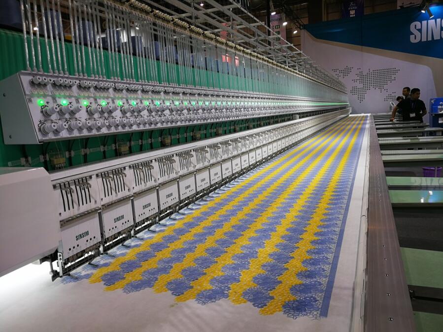 值得一提的是,隨着刺繡應用範圍更廣,今年繡花機參展陣容空前,中外企業達20多家。如鐠美科今年拿下全場最大展位,全球首發一款單機頭可同時進行珠綉、金片綉、平繡的繡花機,並且在1200-1500轉/分鐘下保持穩定。