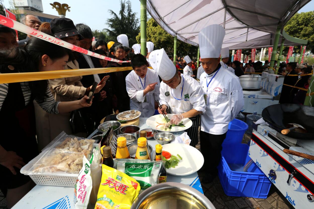 【香港商報網訊】「完全是藝術品,哪裡想得到是菜!」「不僅好看,還好吃,巴適!」昨(28)日,四川省宜賓市長寧縣第十一屆「竹宴天下·味美四海」長寧縣竹食文化旅遊活動月暨招商推介會在長寧縣竹韻廣場啟動,現場一道道以竹為主要原材料的菜品吸引了眾多市民的眼光。