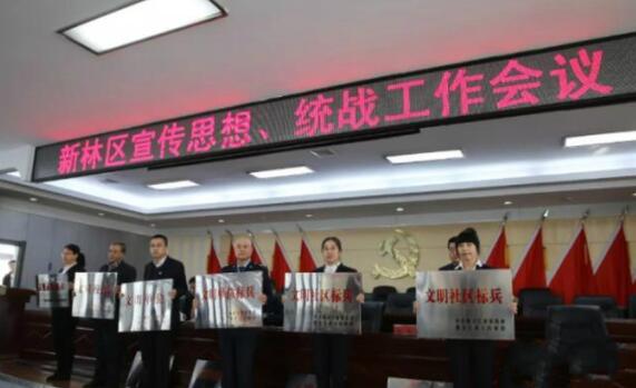 與會領導為省級、地級精神文明建設先進集體,新林區公益事業「傑出貢獻獎」獲得者頒發了獎牌。