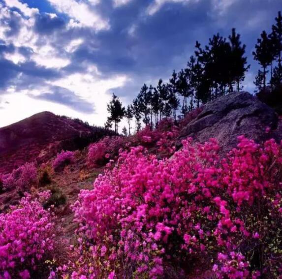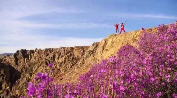 這裡的野生興安杜鵑生長面積大、色彩艷麗,全省少見。每年5月初,漫山遍野開滿了奼紫嫣紅的興安杜鵑,開得狂野、熱烈、奔放,成為紫色的殿堂,花的海洋,舉目望去,如同片片紫雲飄落綠色山崗。