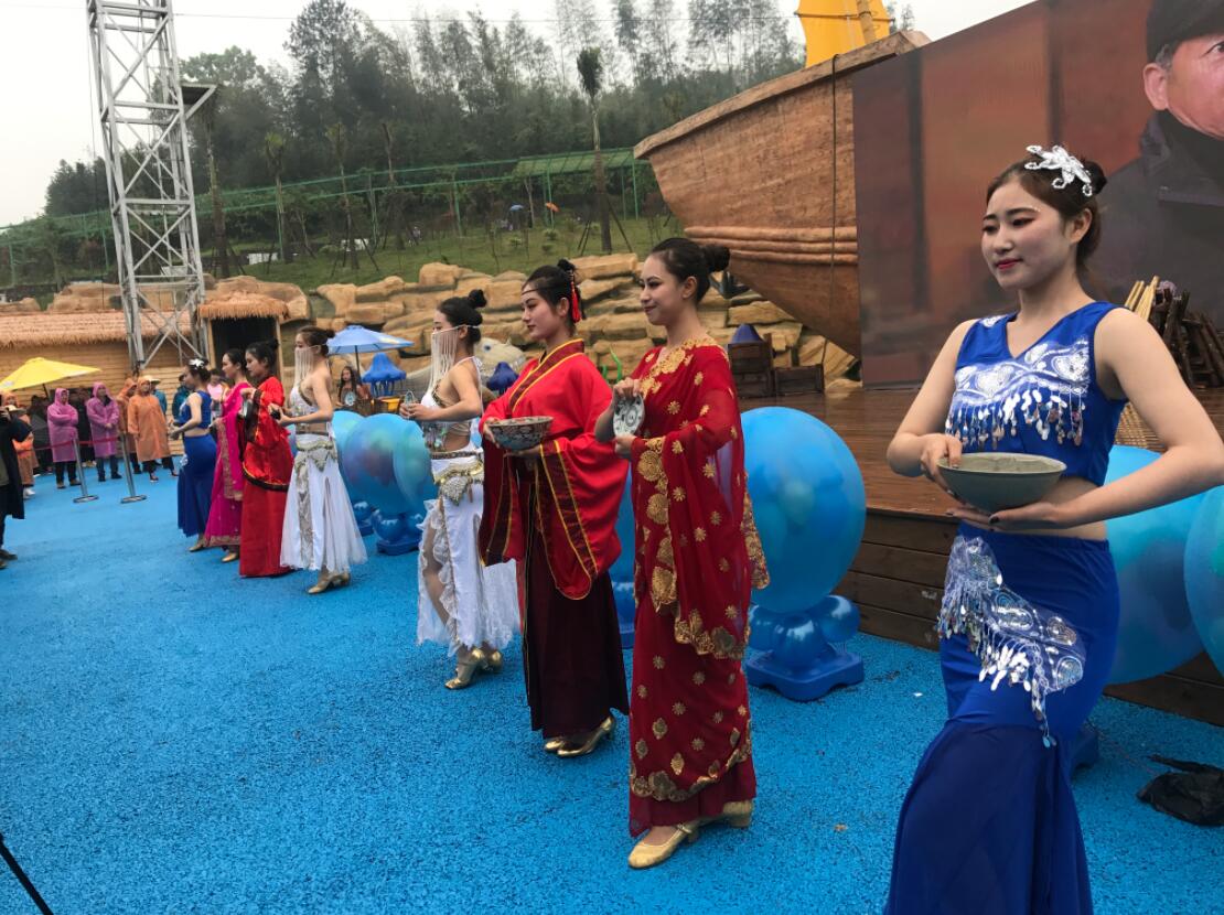 身著異域風情服裝的模特向大家展示海絲古瓷